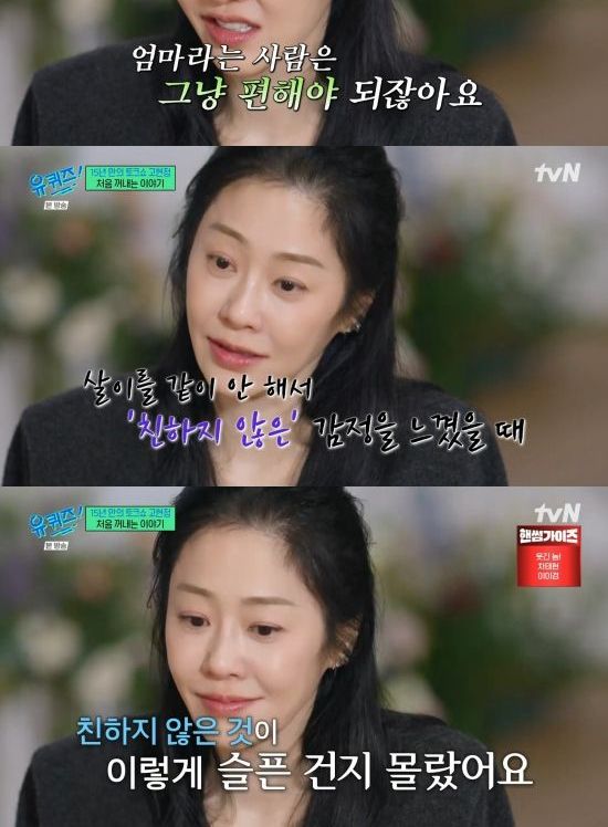 특히 고현정은 "저에 대해서 애들 보고 사나 안 보고 사나 그런 것도 굉장히 궁금해하시는 분들이 많은데 처음 이야기할 수 있는 건 그냥 엄마라는 사람은 그냥 편해야 되지 않냐. 근데 그건 언감생심이고 살이를 같이 안 해서 쑥스럽고 약간 친하지 않은 그 감정을 느꼈을 때 친하지 않은 것이 이렇게 슬픈 건지 몰랐다. 그 감정이 너무 슬픈 거다. 채울 수 없지 않냐. 없어진 거니까. 많이 속상했다"라며 고백했다.