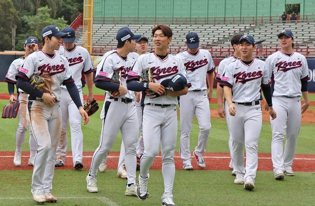 지난 18일(현지시간) 오후 대만 타이베이시 톈무 야구장에서 열린 2024 WBSC 프리미어12 B조 예선 대한민국과 호주의 경기에서 5대 2로 승리한 대한민국 대표팀 선수들이 경기장을 나서고 있다. / 뉴스1