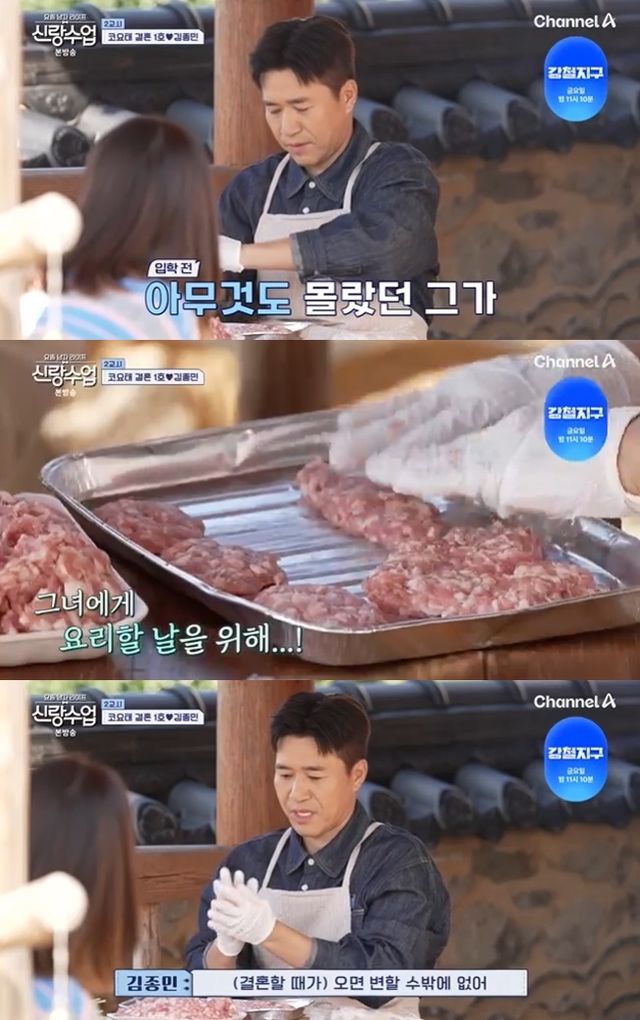 그런 가운데 이날 김종민은 직접 떡갈비 만들기에 도전했다. 손수 떡갈비를 만들며 그는 "결혼할 때가 되면 변할 수밖에 없다"며 달라진 모습을 자랑했다. "김종민이 신랑수업 하면서 신랑이 된 것 같다"는 빽가에게 김종민은 "내가 몰라서 (요리) 안 한거지.."라며 사랑꾼 면모를 드러냈다.