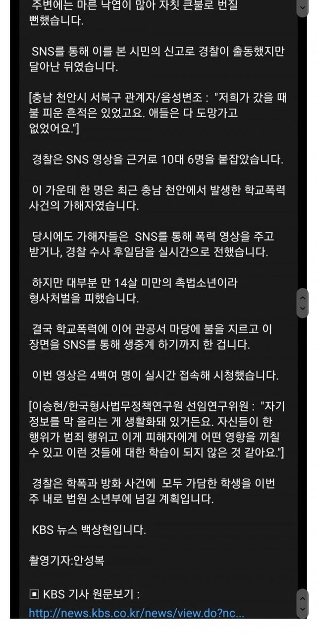 학폭 영상 중계한 10대, 관공서에 불 지른 뒤 방화 중계까지.