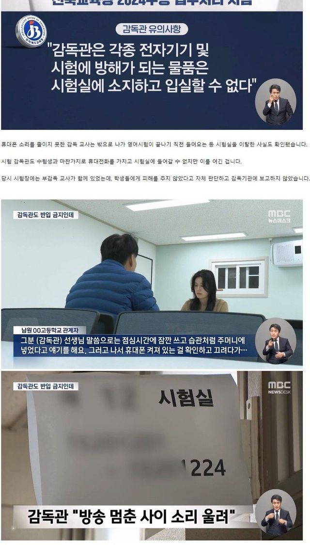 해당 감독관은 교육청 조사에서 듣기평가 문항과 문항 사이 방송이 멈춘 사이 소음이 발생했으며, 시험을 방해할 만큼 크지 않았다고 진술한 것으로 알려졌습니다.
