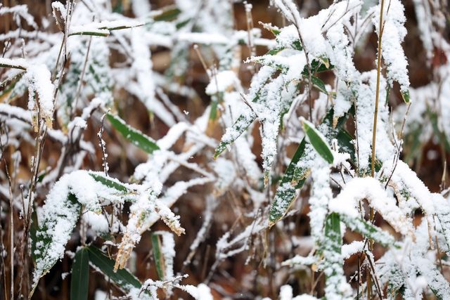 27일 오전 광주 무등산 늦재 쉼터 인근에 첫눈이 내린 가운데 잎사귀에 눈이 쌓이고 있다. / 연합뉴스