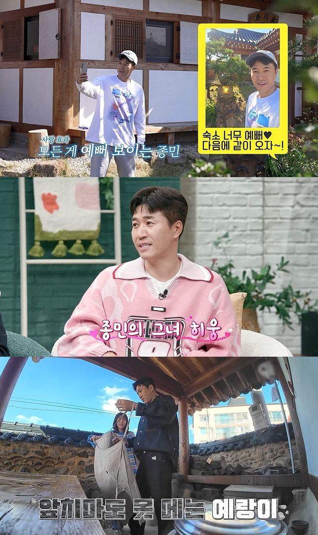 27일 방송된 채널A '요즘 남자 라이프-신랑수업'(이하 '신랑수업')에서는 코요태의 지방 스케줄 때문에 한옥 숙소를 잡은 김종민과 신지, 빽가의 하루가 펼쳐졌다.
