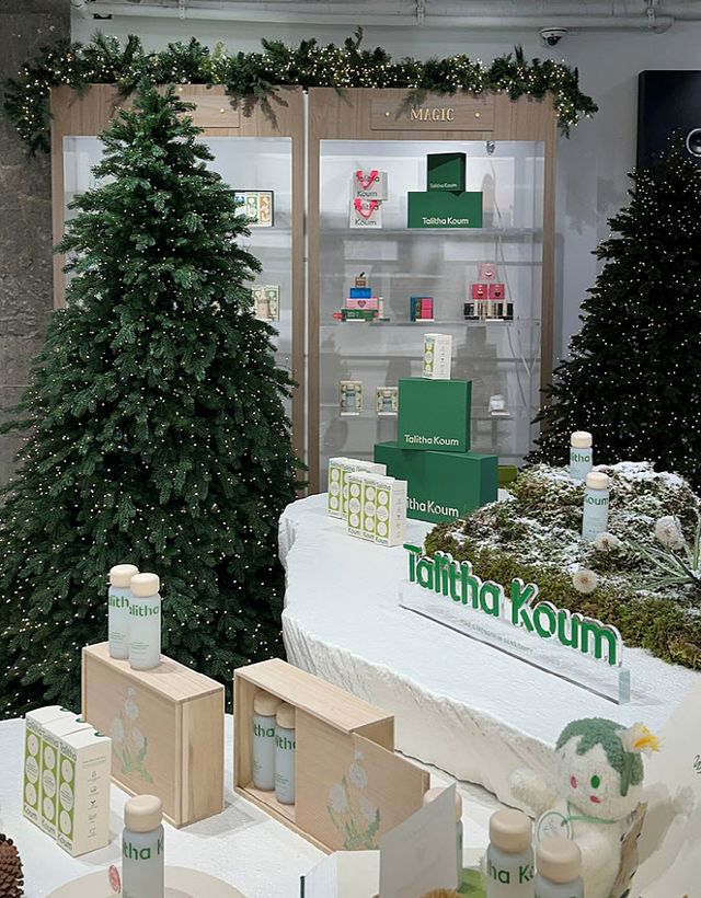 팝업 스토어는 크리스마스 연말 분위기를 느낄 수 있는 다양한 오브제로 꾸며진다. 연말에 선물하기 좋은 탈리다쿰 문박스 패키지도 내놓는다.
