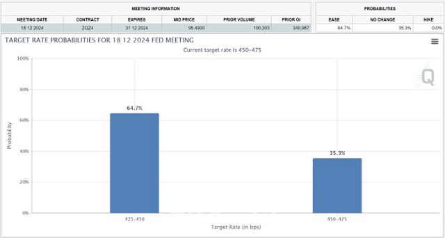 한은의 이번 금리 인하로 한미 금리 역전폭은 175bp로 다시 확대됐다. 미국 연방준비제도(Fed·연준)는 지난 9월 ‘빅컷’(기준금리 0.5%포인트 인하)을 단행하며 금리인하 사이클을 시작한 이후 11월에도 추가로 25bp 내렸다. 미국의 현 정책금리는 4.50~4.75%다. 당초 예상대로 다음달 초 열리는 연방공개시장위원회(FOMC)에서도 25bp 인하를 단행할 경우 한미 금리차는 150bp로 줄게 된다. 간밤 미 상무부가 발표한 10월 근원 개인소비지출(PCE) 가격지수가 소폭 반등했으나 시장 예상치에 부합하고 미 금리가 여전히 제약적인 수준이란 연준의 판단이 유지되고 있어 현재로선 12월 추가 인하 가능성이 동결보다 더 크다. 뉴욕 금리선물 시장에 반영된 향후 미국 기준금리 기대치를 보여주는 페드워치에 따르면 연준의 12월 금리인하 확률은 64.7%로, 전날(59.4%)보다 높아졌다.