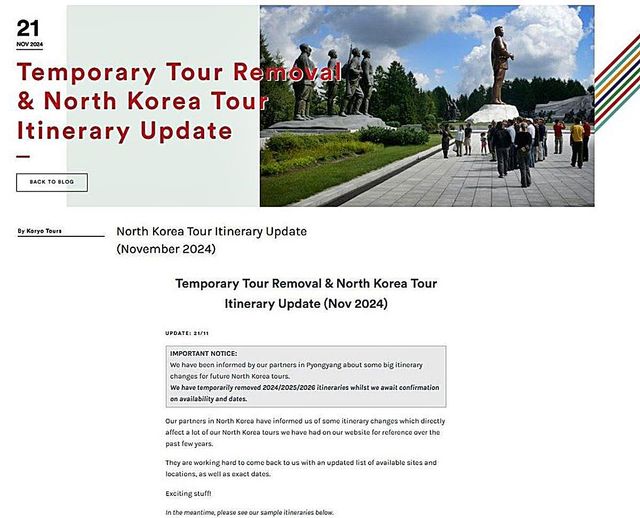 고려투어스는 코로나19 팬데믹으로 북한 관광이 중단된 이후에도 과거 운영되던 프로그램과 비슷한 상품을 홈페이지에 게시하며 "북한이 국경을 열면 즉시 재개할 것"이라고 설명해왔다. 그러나 이번 공지에서 북한 관광이 과거와 동일한 방식으로는 진행되지 않을 가능성을 시사했다.