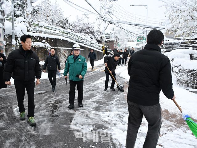 오 시장은 경사지 자동염수장치의 살포가 정확히 이뤄지는지, 도로 열선이 제대로 작동되는지 살피고 취약한 이면도로의 제설 작업의 진행 상황을 확인하며 시민 안전을 챙겼다.