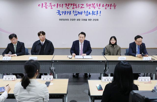 이어 윤 대통령은 "태어난 신생아 수의 거의 10%가 넘는 숫자가 조산아나 저체중 출산아다"며 "이른둥이는 출생 직후부터 중환자실에 장기간 입원을 해야 되고, 또 부모니들의 양육 부담이 크다"고 말하며 이른둥이의 지원을 강조했다.