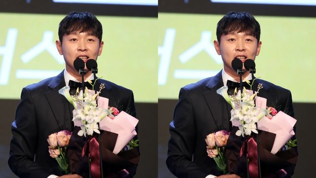 지난 26일 오후 서울 송파구 잠실 롯데월드 호텔에서 열린 프로야구 '2024 신한 SOL 뱅크 KBO리그' 시상식에서 수비상 중견수 부문을 수상한 두산 정수빈. / 뉴스1