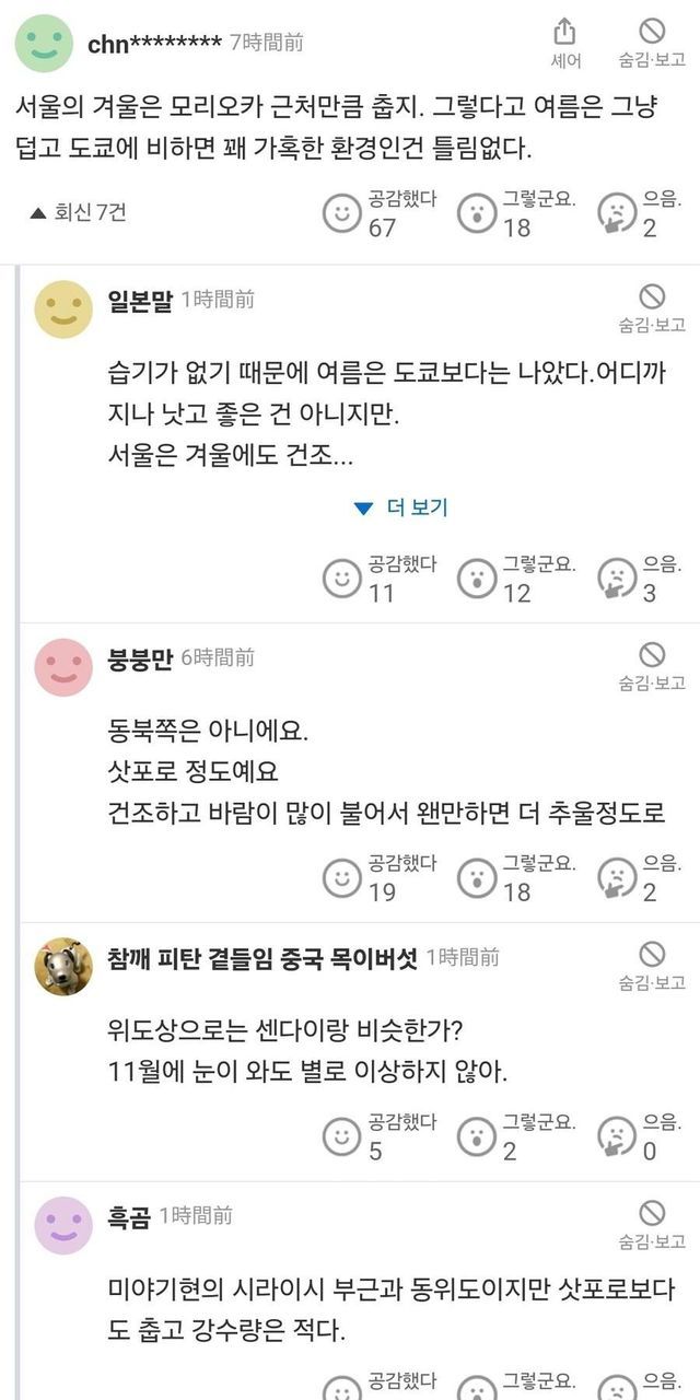 "서울의 겨울은 모리오카(盛岡, 이와테현의 최대도시)보다