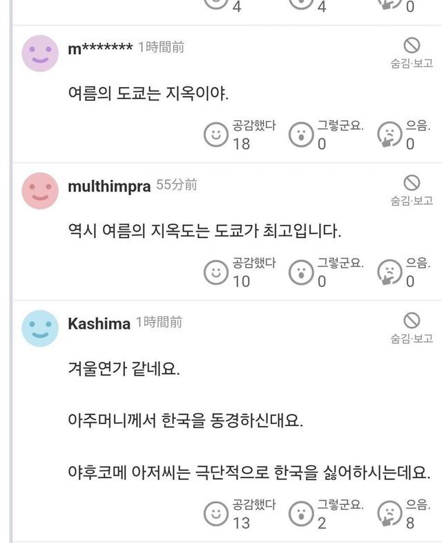 야후재팬에 올렸는데 그 기사 반응 중 어떤 사람이