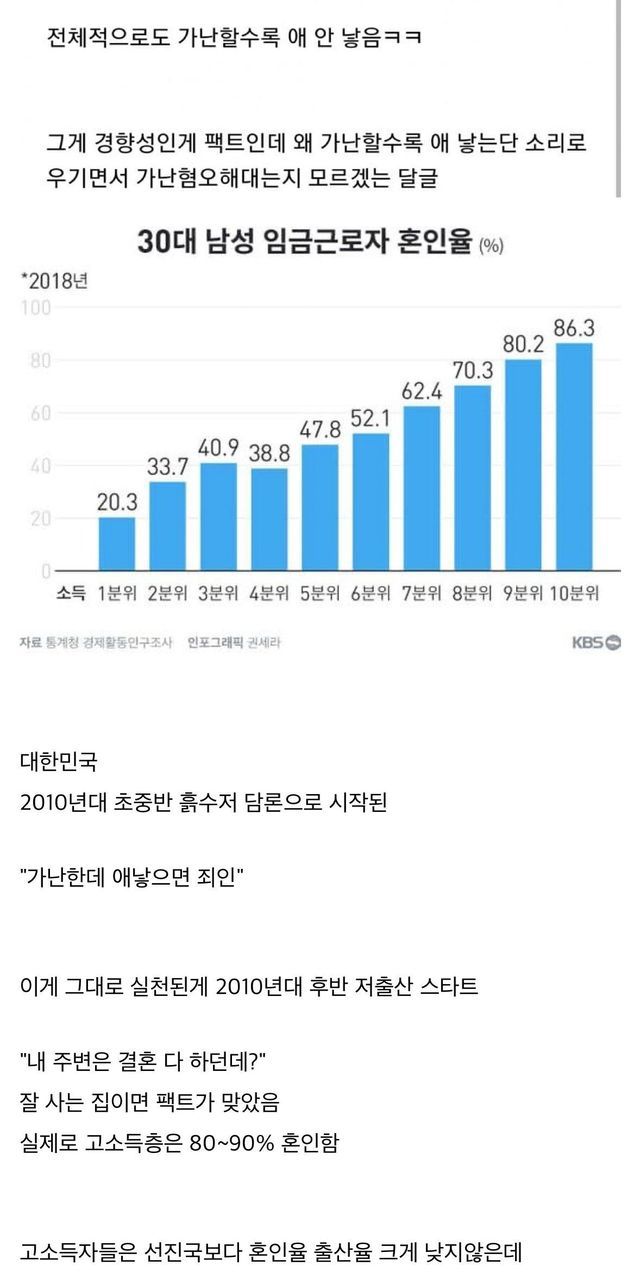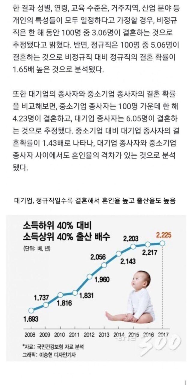 소득이 낮을수록 출산율이 낮은경향이 심한 대한민국.
