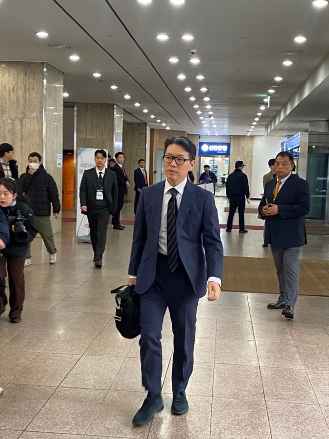 임종훈 한미사이언스 대표이사가 28일 열린 임시 주주총회장에 들어가고 있다. 사진=유수인 기자