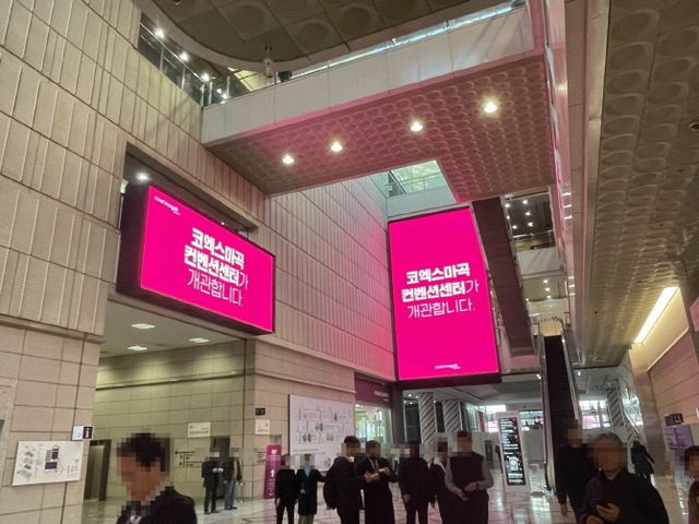 서울 강남구 코엑스 1층 '코엑스마곡' 전광판. = 박선린 기자
