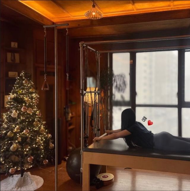 28일 유정은 자신의 인스타그램 스토리에 "뿅"이라는 글과 함께 필라테스 중인 사진을 게재했다. 화려한 크리스마스 트리가 앞에 놓인 가운데 운동에 집중하는 유정의 모습이 눈길을 사로잡는다.