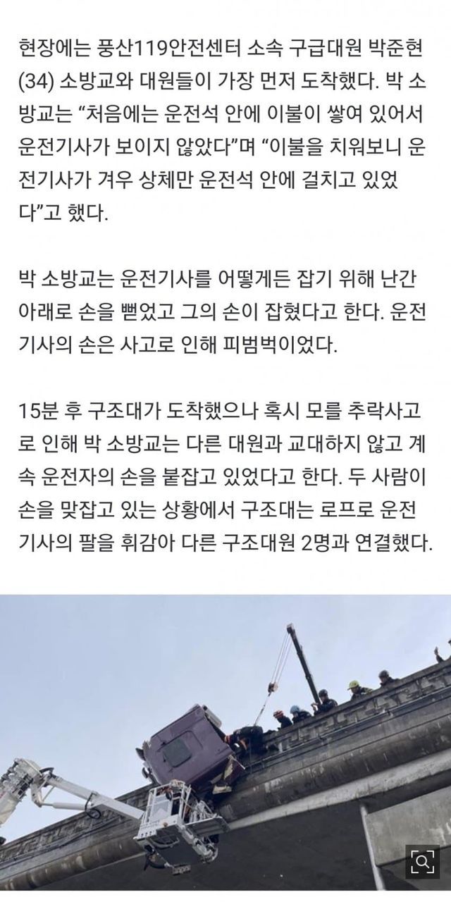 11m 교량서 떨어질뻔한 시민 구한 구급대원