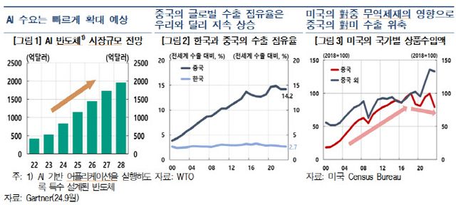 한은 측은 HBM 등 고성능 반도체 수출은 호조를 지속하고 있으나 여타 범용 반도체는 수요부진 등으로 둔화된 것으로 추정되며, 철강·화학제품 수출도 중국의 과잉공급 등으로 크게 부진했다고 평가했다.