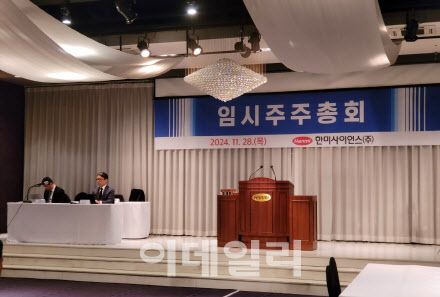 한미사이언스는 28일 서울 송파구 서울교통회관에서 열린 임시주주총회 결과 정관 변경 안건이 부결되면서 이사 선임안 중 1건만 가결됐다. 한미사이언스 이사회에 개인 최대주주이자 모녀 측(송영숙 한미약품그룹·임주현 한미사이언스 부회장)과 ‘3자 연합’을 형성한 신동국 한양정밀 회장만 이사회에 새로 진입하면서 형제 측(임종훈 한미사이언스 대표·임종윤 한미사이언스 사내이사)이 우세했던 5대 4 구도에서 5대 5로 팽팽해졌다.