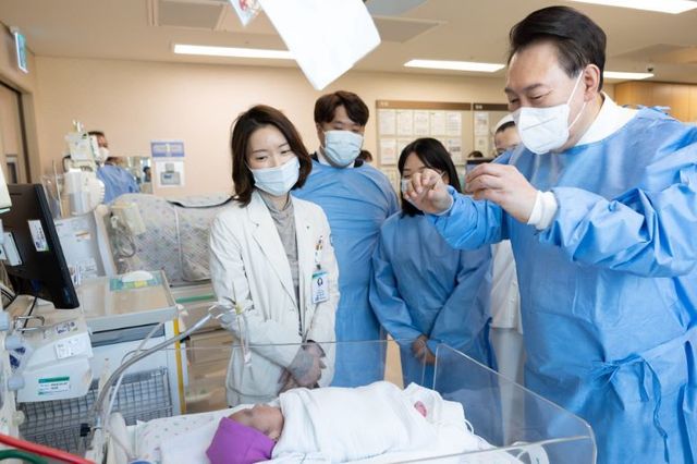 28일 윤 대통령은 서울성모병원의 신생아 집중치료실을 방문했다.