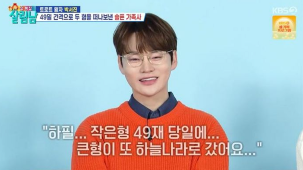 앞서 박서진은 KBS2 예능 프로그램 '살림하는 남자들2'에 출연해 가정사를 고백한 바 있다. 그는 만성 신부전증을 앓던 작은 형의 49재 당일 간암 투병을 하던 큰 형이 간 이식 부작용으로 세상을 떠났다고 밝혀 안타까움을 안겼다.