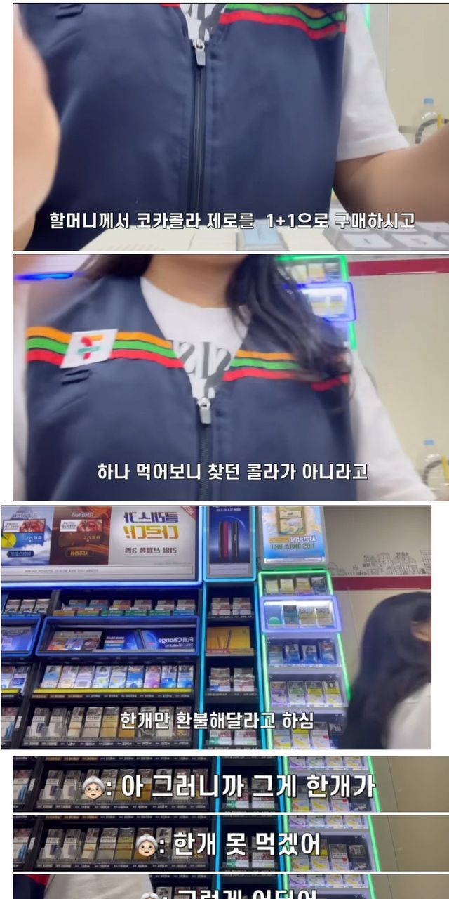 1+1 콜라 하나는 환불해달라는 편의점 할머니..