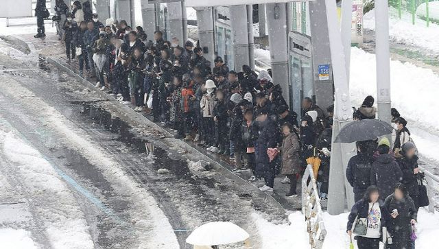 28일 업계에 따르면 삼성전자는 이날 아침 각 부문과 사업장별로 임직원들에게 “출근이 어려울 경우 재택근무를 하거나 개인 연차를 사용하라”고 공지했다. 또 사업장과 인근 지하철역 순환 셔틀도 긴급하게 편성해 직원들의 출근을 도왔다.