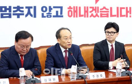 다만 국민의힘이 위헌소송을 하기 위해 현재 헌법재판소를 정상화해야 하는 것 아니냐는 지적에 그는 “(헌법재판관 관련)유력 검토 명단까지 나왔다”며 “거의 다 왔다고 보면 된다”고 설명했다.