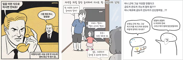 인스타툰에는 전문 만화가가 아닌 이도 많다. 대부분 플랫폼과 별도 계약 없이 개인 소셜미디어에 사진을 올리는 식으로 연재한다. ‘김퇴사’의 지창현 작가는 3년간 경험했던 직장 생활을 그려 공감을 얻고 있다. 연재 시작 6개월 만에 팔로어 5만7000여 명을 달성했다. 한 식품 회사와 협업해 ‘김퇴사’ 캐릭터가 그려진 졸음퇴치껌을 출시했다. 오는 29일엔 서울 용산의 한 백화점에서 캐릭터 굿즈를 파는 팝업 스토어를 연다. 지씨는 “내 작품은 한 컷으로 메시지를 전달하는 형식인데, 인스타그램은 이런 특성에 최적화된 플랫폼”이라며 “강렬하고 재밌는 한 컷은 다른 인터넷 커뮤니티나 카카오톡으로 퍼 나르기 쉬워 홍보 효과도 탁월하다”고 했다.