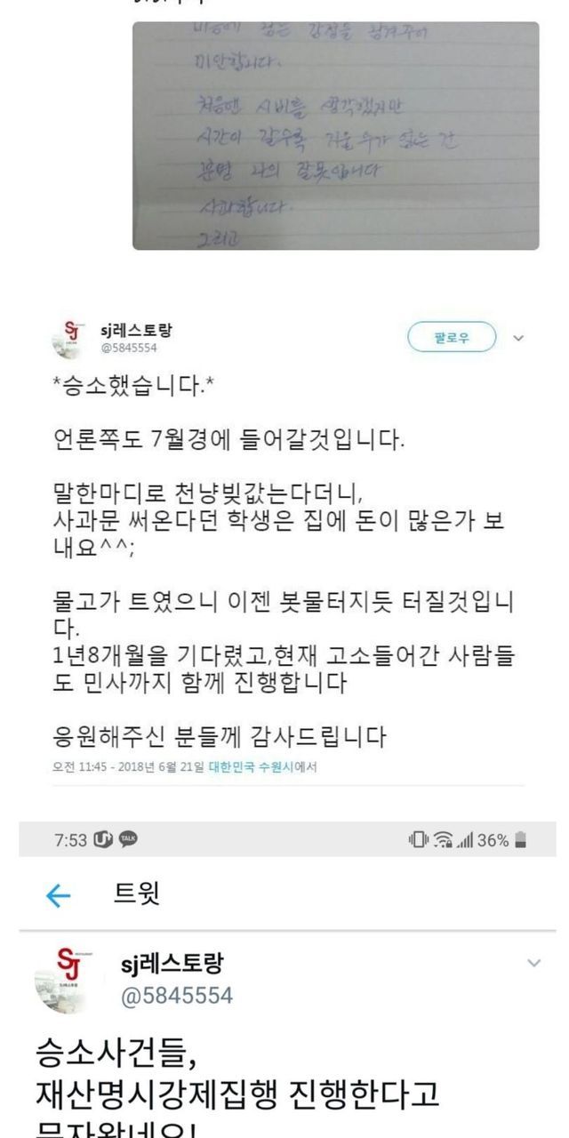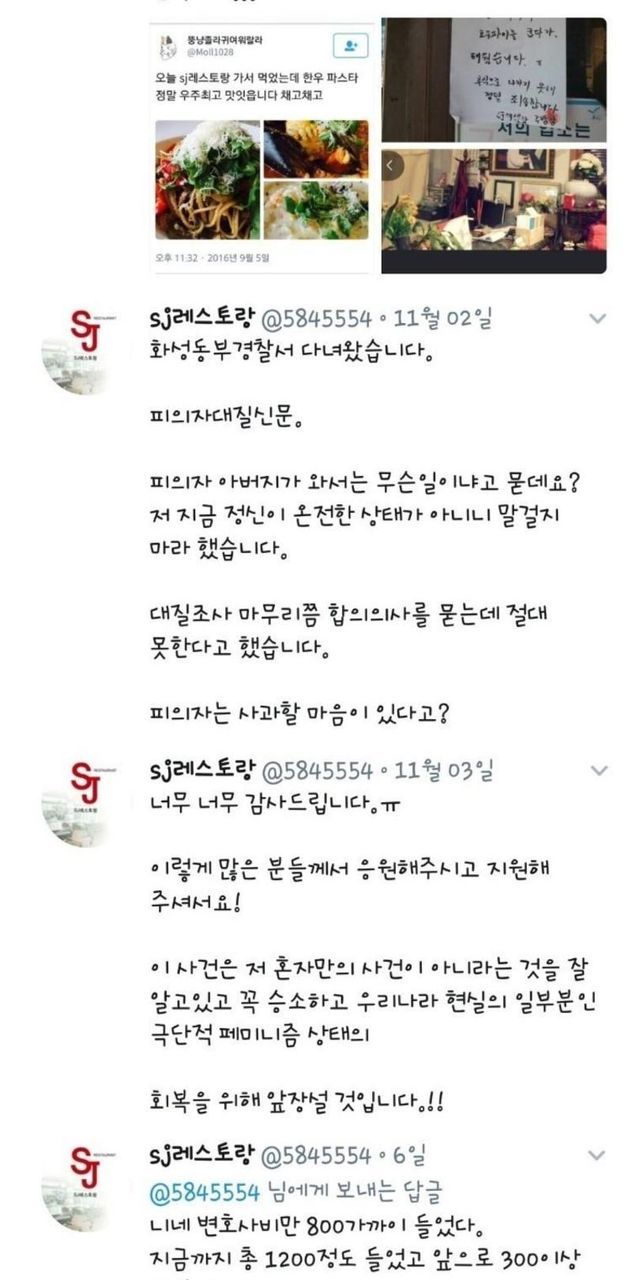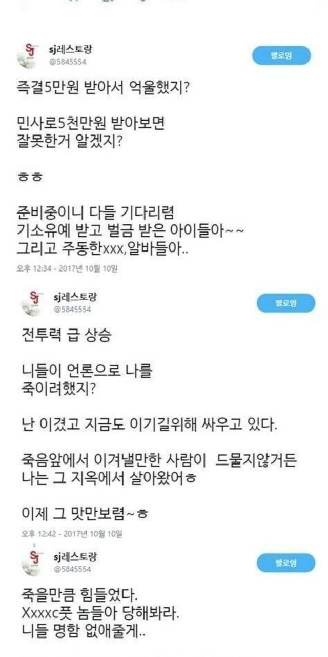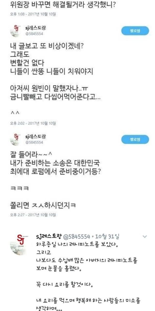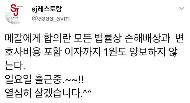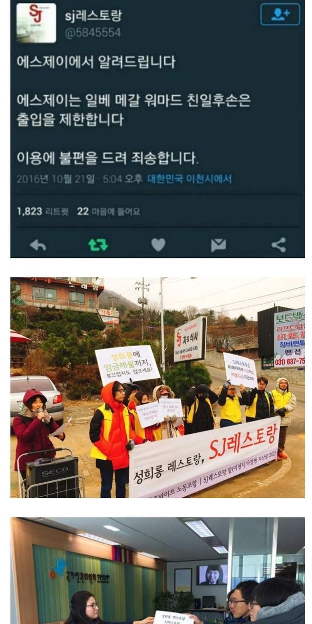SJ레스토랑 트위터에 메갈 안받는다고 올림