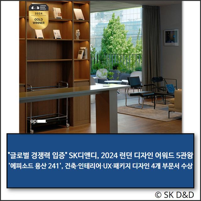 SK디앤디(SK D&D·210980)가 '2024 런던 디자인 어워드(London Design Awards)'에서 5관왕에 올랐다.