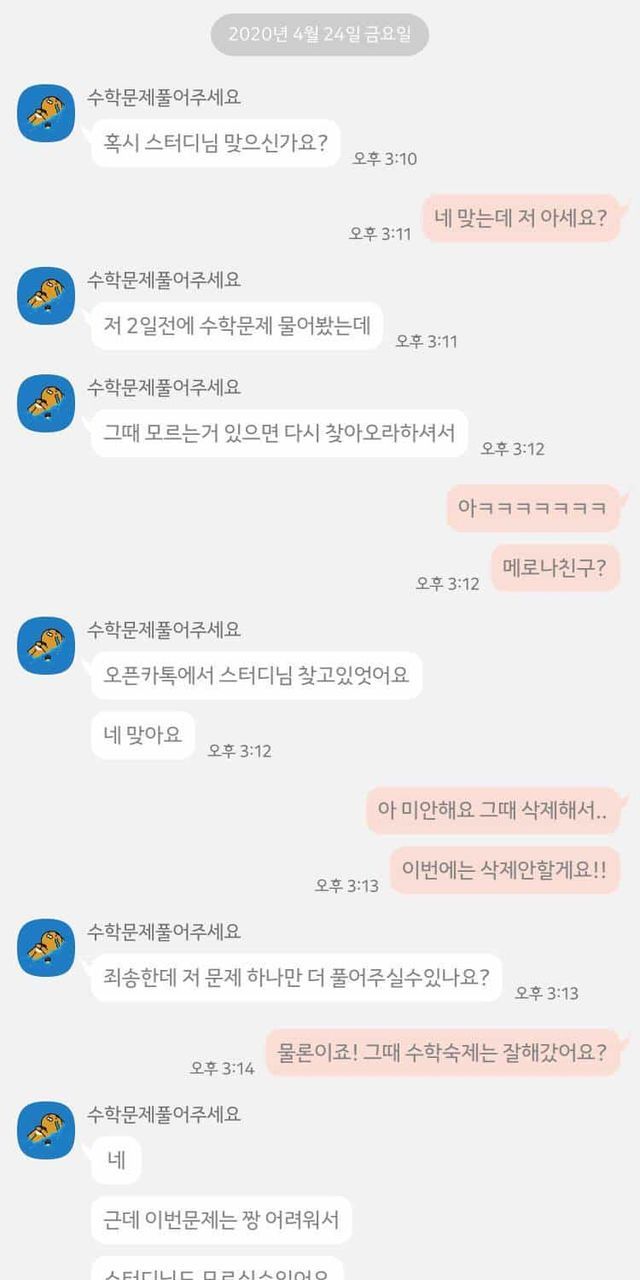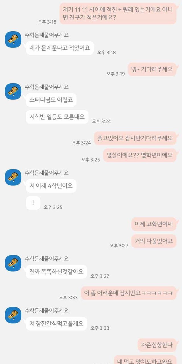 오픈 카톡에 수학 문제 물어보러 온 초딩