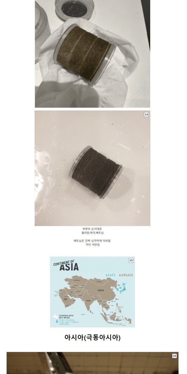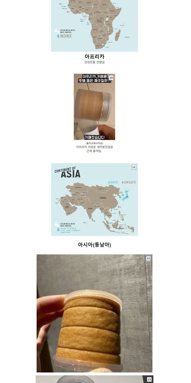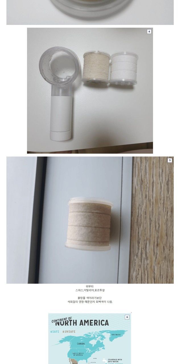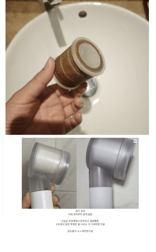 여행용 샤워기로 확인한 나라별 수돗물 색깔.