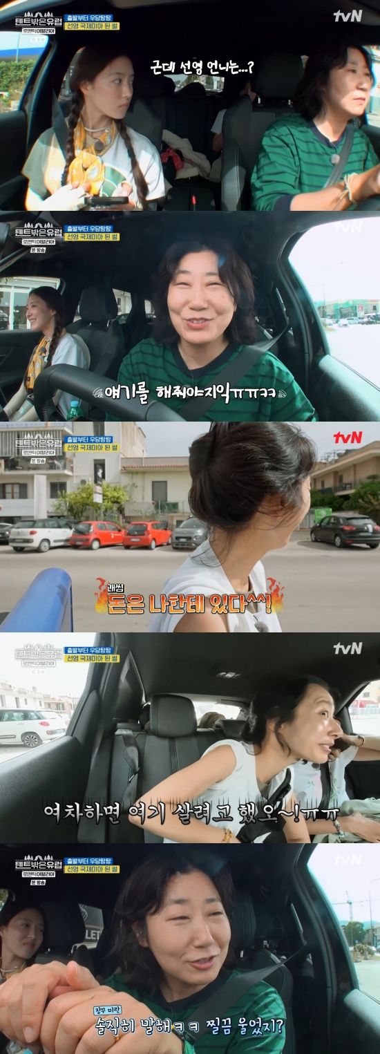 이주빈은 뒤늦게 곽선영 없이 차가 출발했다는 것을 알았고, "선영 언니는?"이라며 의아해했다. 라미란은 "이야기를 했어야지. 놓고 갈 뻔했다"라며 웃음을 터트렸고, 이주빈은 "저는 살짝 앞으로 빼는 줄 알았다"라며 설명했다.