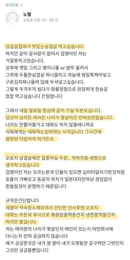 당근에서 삼겹살 함께 드실 분 모집+후기.