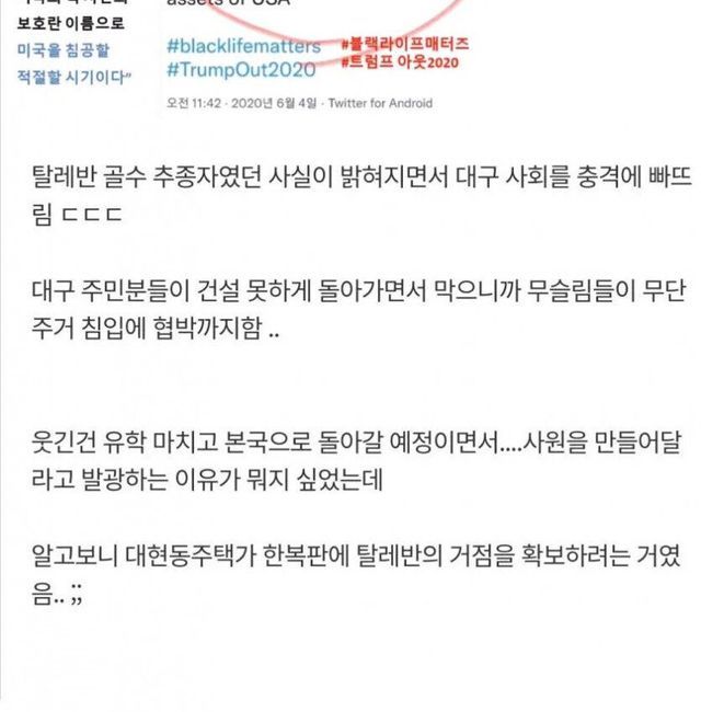 좀 어이가 없는데. 종교적 자유라는 가치를 위해 대구 도심 중심가에 탈레반 극렬 지지자가 주도하는 모스크 사원 건립을 허가를 내줬다는건가?