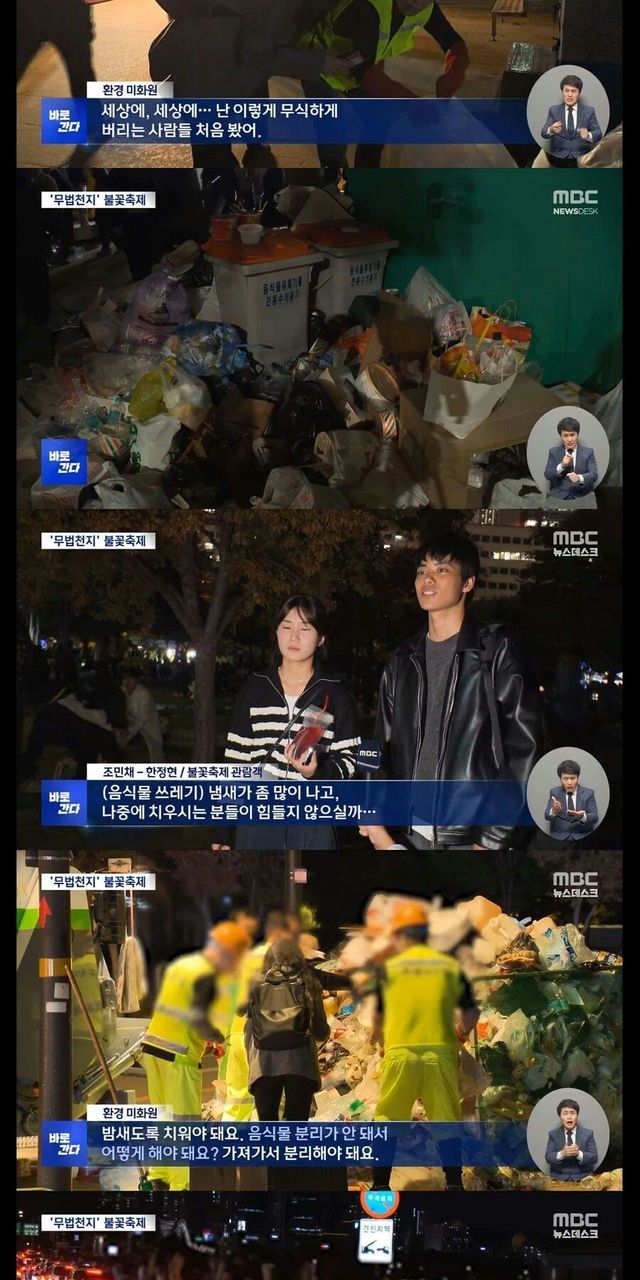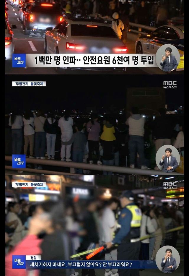 어제 여의도 불꽃축제 당시와 끝난후 현장.