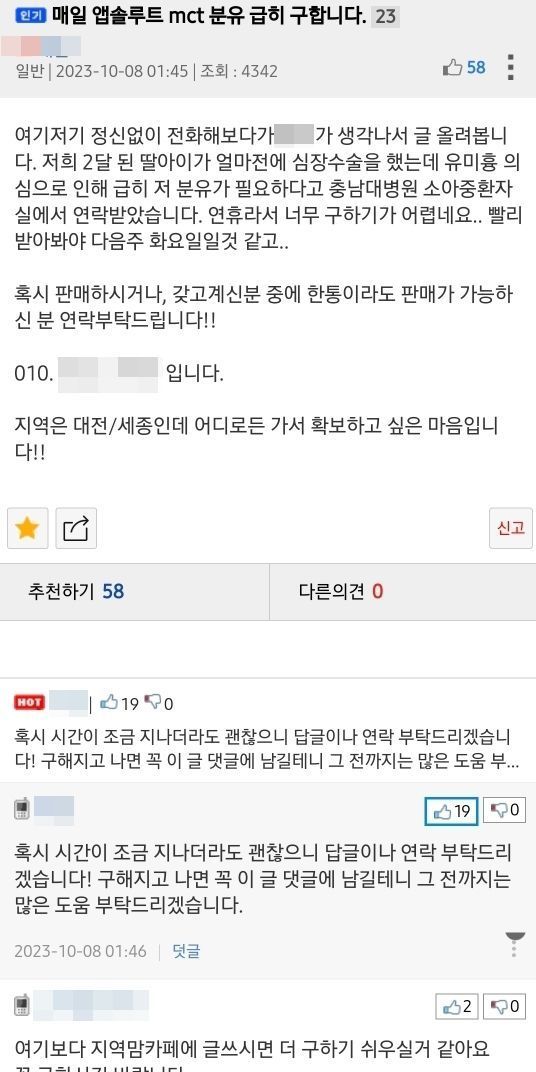 급하셔서 본인 번호까지 오픈하셨는데