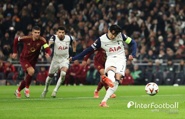 [인터풋볼] 주대은 기자 = 토트넘 홋스퍼가 손흥민의 페널티킥 선제골에 힘입어 AS 로마에 2-1로 앞서고 있다.