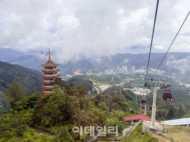 | ‘겐팅 하일랜즈’로 향하는 케이블카와 높게 솟은 친스위 사원 |
