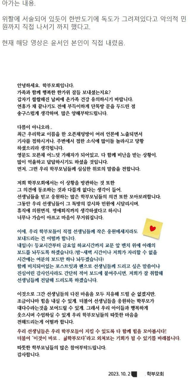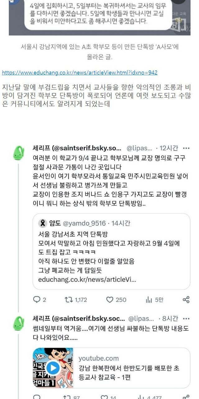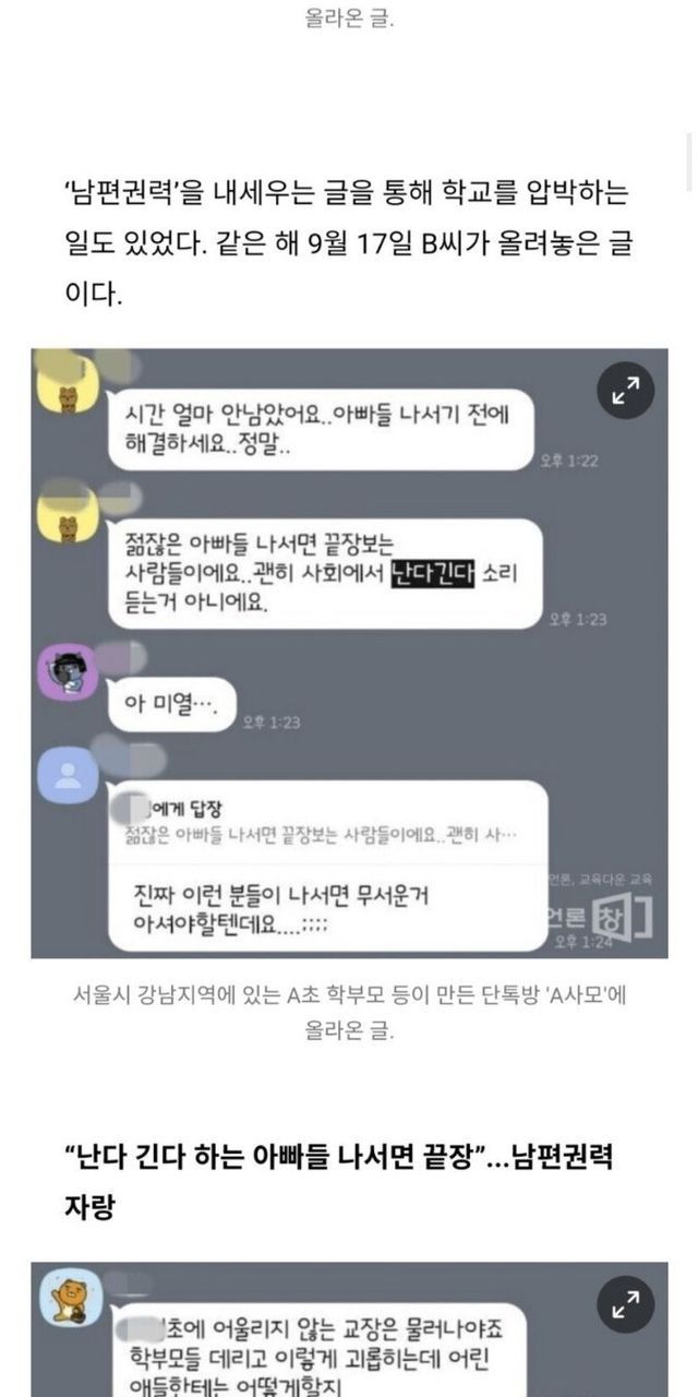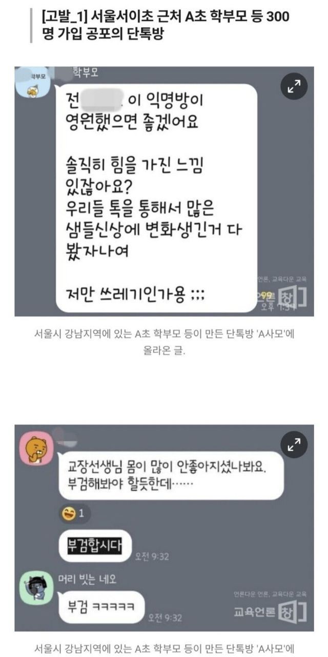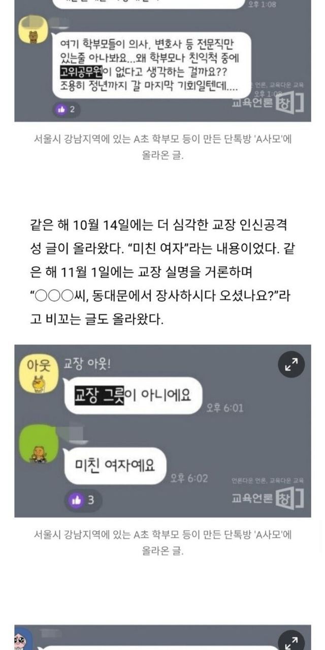 학부모 단톡방으로 난리 났었던 A 초등학교 최근에 드러난 사실.
