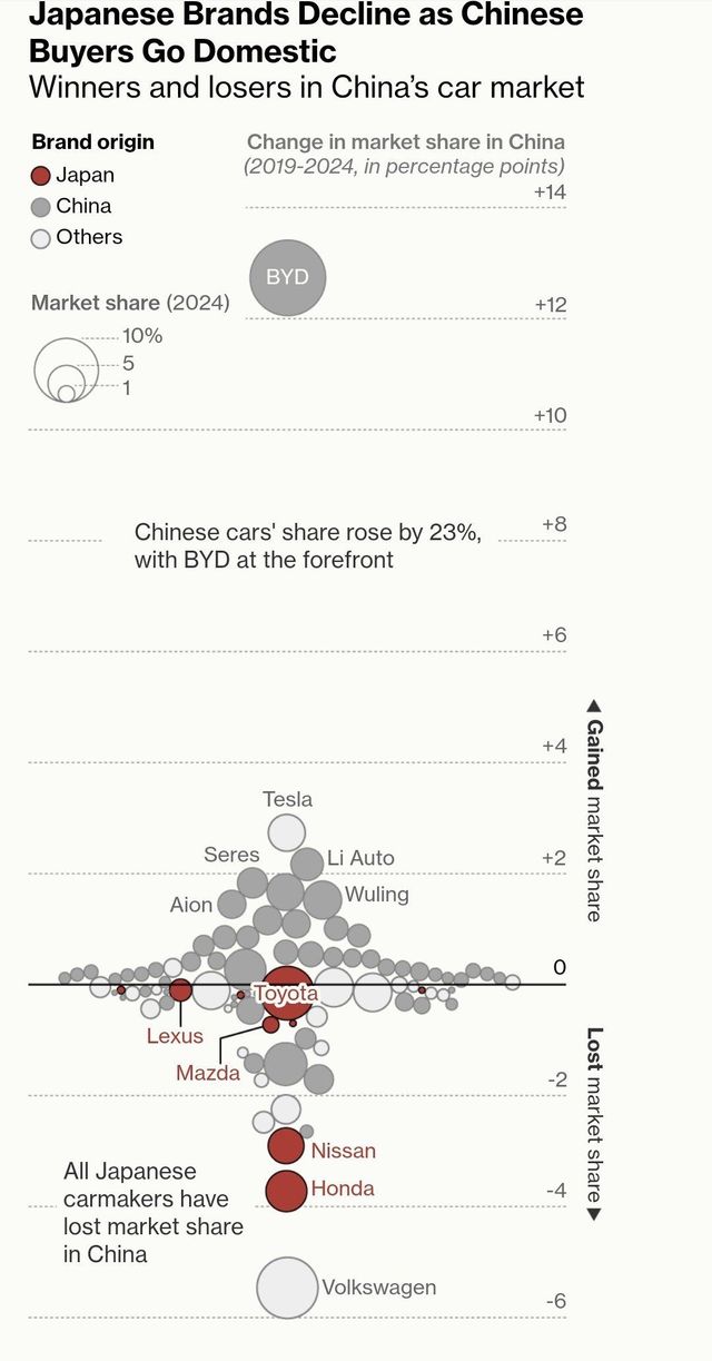게다가 전기차 기술이나 배터리에서 중국이 일본보다 훨씬 앞서기에 관세가 있지만 미국 유럽 시장에서도 똑같은 일이 일어나지 말란법 없기 때문.
