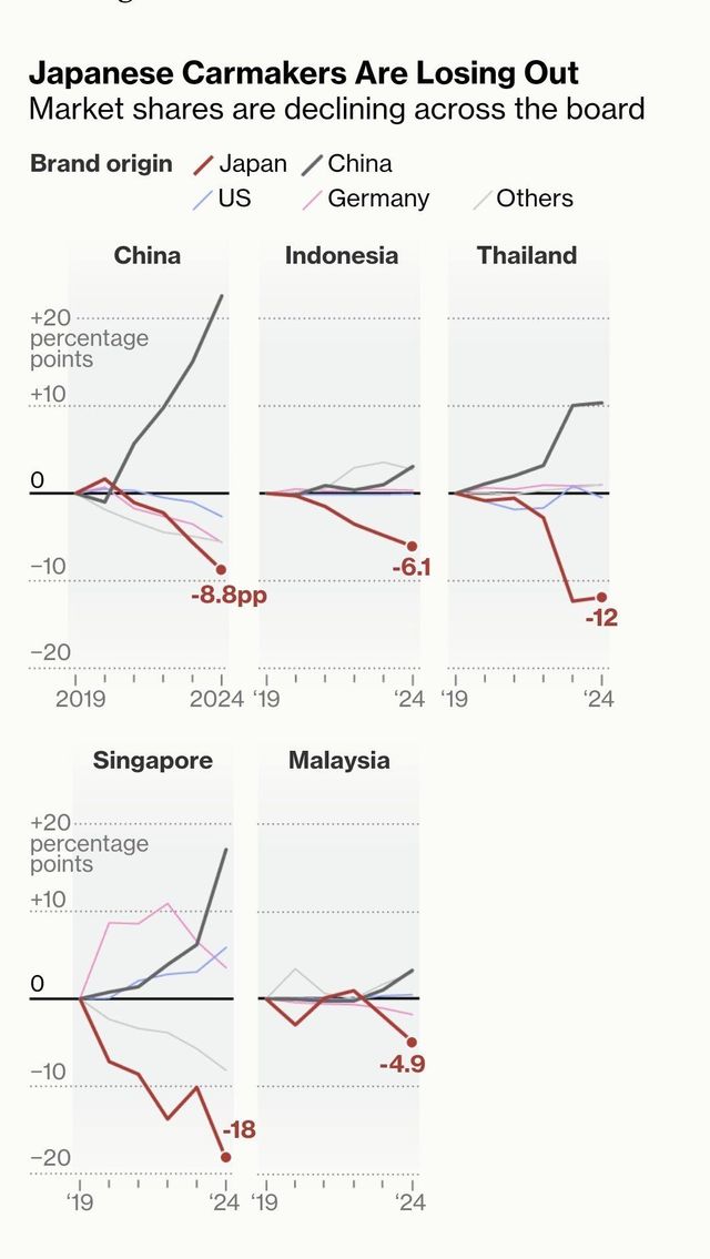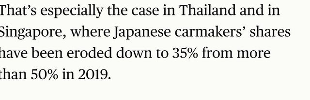 일본의 안방이자 아성이던 동남아에서 중국차에 점유율을 뺐기고 있다는 것. 심지어 친일 성향이 매우 강한 태국에서조차.