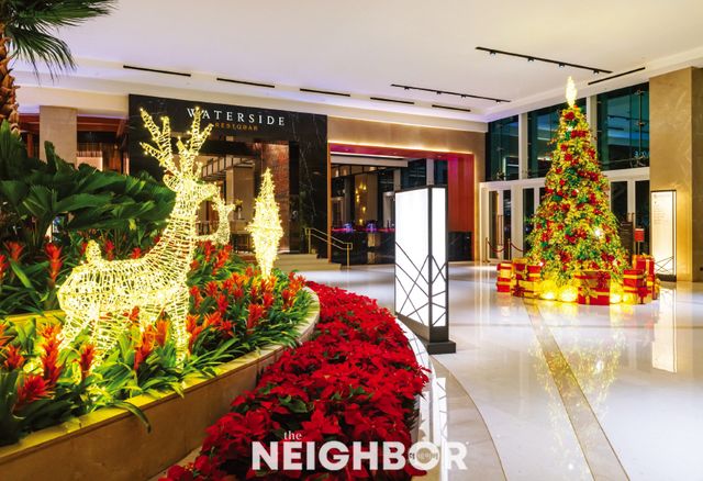 화려한 크리스마스 장식이 반기는 솔레어 리조트 엔터테인먼트 시티 로비 풍경.