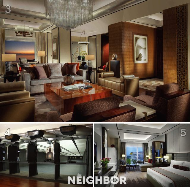 3 솔레어 리조트 엔터테인먼트 시티 스카이 타워의 프레지덴셜 스위트 객실. 4 실탄 사격을 체험할 수 있는 사격장 ‘스카이 레인지’. 5 기본 객실인 스카이 스튜디오는 쾌적한 넓이를 자랑한다.