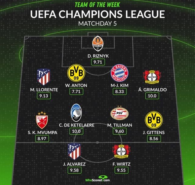 유럽축구연맹(UEFA)은 29일(한국시간) 공식 홈페이지에 UEFA 챔피언스리그(UCL) 리그 페이즈 5차전 이주의 팀을 선정했다. 김민재가 이름을 올렸다. 김민재와 함께 훌리안 알바레스, 플로리안 비르츠, 알렉시스 맥 앨리스터, 벤세비아니, 파우 쿠바르시, 퀴민 켈러허, 율리엔 팀버 등 5차전을 빛낸 선수들이 대거 이름을 올렸다.