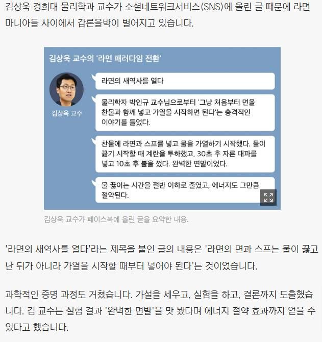 라면 끓일때 찬물 논란