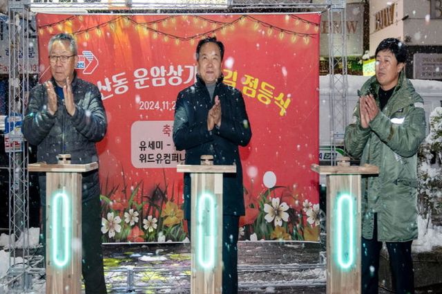 이날 점등식 행사에는 이권재 오산시장과 오산동 운암상가의 상인회원 및 이용 고객 등 50여 명의 시민이 참석했다.