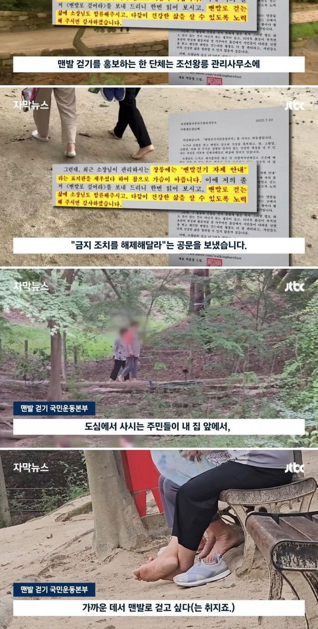 유튭때문에 노년층에서 맨발 걷기가 유행
