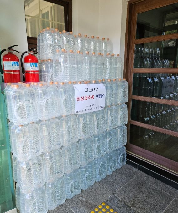 지난 11월 18일부터 동절기 폭설과 한파, 결빙 등 단수로 인한 피해에 선제적으로 대응하여 물 공급에 불편함이 없도록 50박스(1.8ℓ×6병)씩 3,600병을 금강송면 12개리 마을회관에 우선 비치 완료했다.