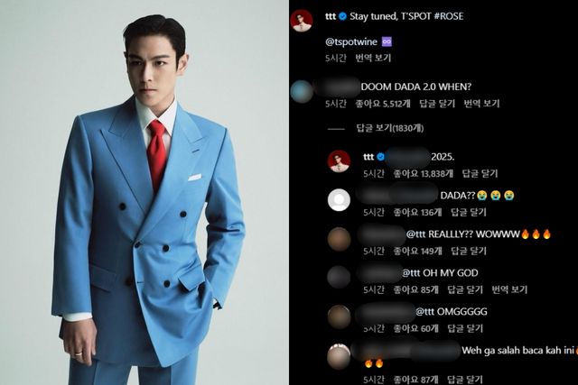 29일 탑이 자신의 SNS 게시물 댓글 속 "'DOOM DADA' 2.0는 언제?"라고 물은 한 네티즌 질문에 "2025"라고 답했다.